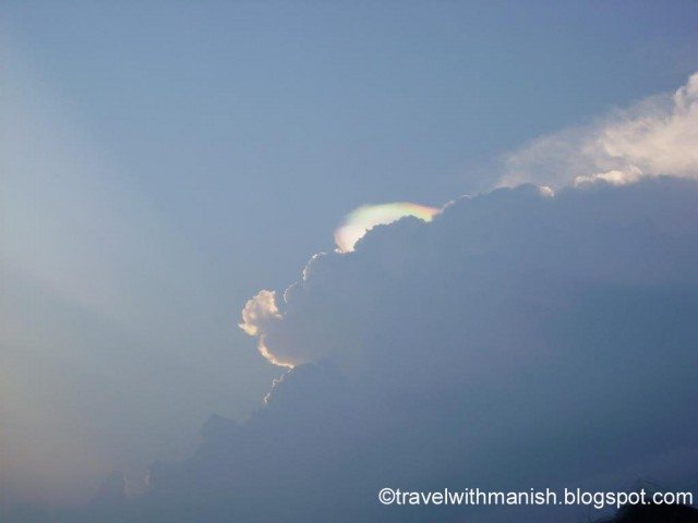 दिन का भोजन करने के बाद हम लोग वापस चल पड़े। दिन की कड़ी धूप गायब हो चुकी थी और रिमझिम रिमझिम बारिश होने लगी थी। हल्की फुहारें और ठंडी हवा के बीच भीगने का आनंद भी हमने उठाया। आधे घंटे बाद आकाश से बादल छँट चुके थे और गगन इंद्रधनुषी आभा से उद्दीप्त हो उठा था। ऐसा लग रहा था कि ये नज़ारा भगवन ने मानो भितरकनिका के विदाई उपहारस्वरूप दिखाया हो। आप भी देखिए ना…