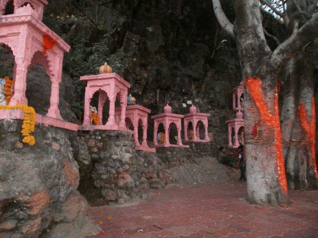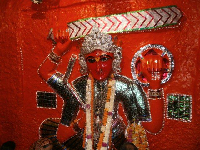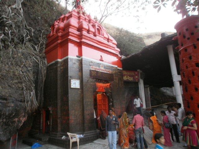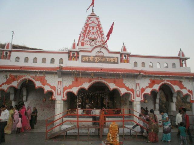 पहाड़ी के शीर्ष पर विपरीत दिशाओं में मंदिर स्थित हैं एक माता तुलजा भवानी (बड़ी माता ) का तथा दूसरा माँ चामुंडा ( छोटी माता) का. मार्ग में पहले चामुंडा माता का मंदिर आता है जहाँ पर एक गुफा में एक वृहद् शिला को तराश कर माता चामुंडा की छवि उकेरी गयी है जिनके दर्शन मात्र से चढ़ाई की साडी थकान छूमंतर हो जाती है.