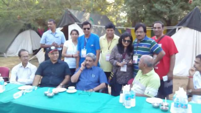 आज सभी को नाश्ते के बाद 9 बजे तक अपने अपने टेंट की साफ़ सफाई करके उन्हें आयोजन कर्ताओं को सौपना थे…अचानक थोड़ी गहमा गहमी हुई कैंप में..और देखने गये तो क्या देखते है की हमारे माननीय रक्षा मंत्री श्री मनोहर पर्रीकर जी बिना किसी तामझाम के या लावलश्कर के कैंप में अकेले ही आ गये (ये गोवा के पूर्व मुख्य मंत्री रहे है)
