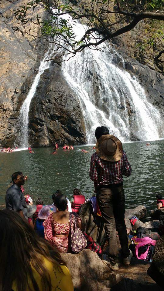 ये बता दू की गाडी का कूपन आदि लेने के लिए लाइन में एक घंटे से ज्यादा वक़्त लग गया था और यदि आप 8 से 9 तक पहुच सके तो कम भीड़ होगी..,खैर, बेहद ऊँचे नीचे और उबड़ खाबड़ रास्ते से होते हुए फॉल से 1किमी पहले ही उतार दिए गये ये कह कर की आगे जाम है,पहाड़ी रास्ते पर पैदल चलके जाना हमारे कुछ वरिष्ठ साथियों के लिए मुश्किल था किन्तु पहुच ही गये और वहा की खूबसूरती देख के यात्रा की थकान मिट गयी…ऊपर रेलवे ट्रेक पर निकलती ट्रेन उसके नीचे से गिरता तेज़ ठंडा पानी और नीचे बन गयी छोटी सी झील..लगता था देखते ही रहे…कब तक खुद पे काबू रखते जबकि अनेक लोग झील में जलक्रीडा से आनंदित हो रहे थे..तुरंत लाइफ जैकेट पहने हम सभी पुरुष व् महिलाये पानी में उतर गये..थकने या डूबने का खतरा नही था तो सब निश्चिंतता से पानी में पड़े रहे…