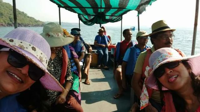 आज हम फिर बीचेस के साथ किले देखने निकले ..सबसे पहले हमने डॉलफिन देखने का प्रोग्राम बनाया और अग्वादा से बोट में बैठ कर लगभग 5 किमी अन्दर समुद्र में पहुचे…कुछ डॉलफिन दिखी भी..यहाँ आपको बता दू की कभी जाए तो फोटो खीचने की कोशिश ना करे अन्यथा ना डॉलफिन देख पाएंगे ना फोटो ले पाएंगे..