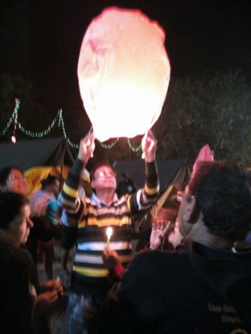 नव वर्ष पर फायर बलून उड़ाते हुए