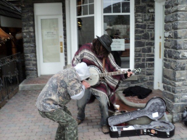 अब शहर देखना शुरू किया, यह बैंफ की एक सड़क है, इसी पर दुकानें और माल है, फ़ुर्सत से चहल कदमी करो. दो लड़के गिटार बजा रहे हैं. लोग सुन कर कुछ पैसे दे देते हैं. सामने पहाड़ है, काफ़ी अच्छा सीन हैं. हमारे भारत में तो विशाल हिमालय पर्वत है, पर एक भी हिल स्टेशन बता दो, जहाँ ४१५ किमी. पाँच घेंटे में पहुँच सकें. कुदरत ने हिमालय पर्वत बनाने में कोई कमी नहीं की पर हमारे सड़क बनाने वाले सड़क का डिज़ाइन बनाने से चूक गये.
