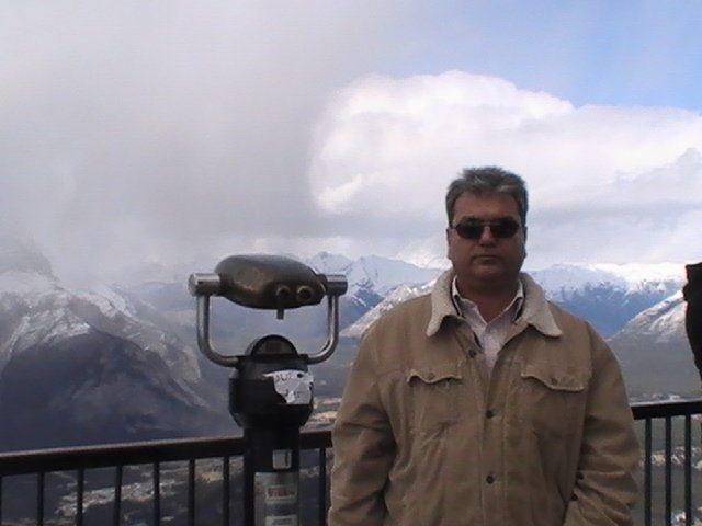 भाई बहन जैसे मनाली की बर्फ दिखाते हैं, ऐसे ही यह इस परबत की चोटी पर बर्फ है, मैं भी एक फोटो खिंचवा लेता हूँ. फैसला आप पर है, रोहतांग या बैंफ, कौन सी बर्फ ज्यादा सफ़ेद है? इंडिया या कैनेडा क्या प्राक्रिति भी भेद भाव करती है …