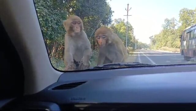 यहाँ पर पैंतालीस मिनट का ब्रेक लेने और रिफ्रेश होने के बाद अब हम लोग निकल पड़े देहरादून मसूरी की तरफ जहाँ के बारे में इंटरनेट पर बहुत कुछ सुन और देख रखा था। सुपुत्री भी अब अपनी नींद पूरी हो जाने के कारण आराम से सफर का आनंद ले रही थी और रास्ते में मिलते बंदरो के झुण्ड देख-देख कर बेहद प्रफुल्लित हो रही थी।