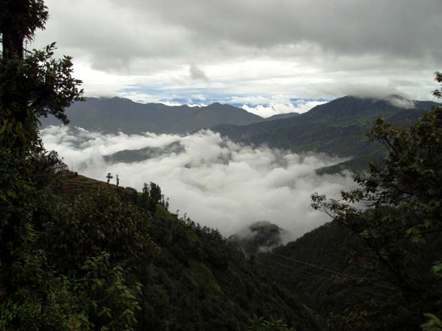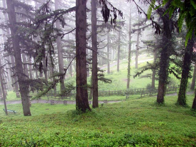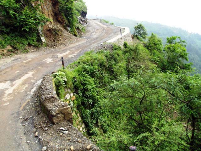 मुझे तो धनोल्टी का रास्ता काफी खतरनाक लगा. सड़क मसूरी वाले रास्ते की तरह चौड़ी नही थी. पतली सी सर्पीली सड़क पर हमारी बस धीमी गति से ही चढ़ाई पर चढ रही थी. बरसात के मौसम होने के कारण हर तरफ हरियाली थी. परंतु कई स्थानो पर सड़क टूटी हुई थी. वैसे भी कुमायूँ काफी हरा-भरा है.