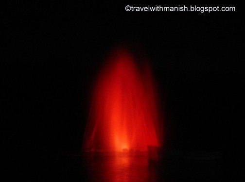 झील तो आम झीलों की तरह ही थी पर आस पास का माहौल देख के ये जरूर समझ आ गया कि इस झील का नागपुर के लोगों के लिये वही महत्त्व है जो मुंबई वासियों के लिये मैरीन ड्राइव का ये कलकत्ता के लोगों के लिए विक्टोरिया गार्डन का । उमस काफी हो रही थी सो कुछ समय बिता, इस लाल रंगत बिखेरते फव्वारे की छवि लेकर हम वापस लौट गए ।