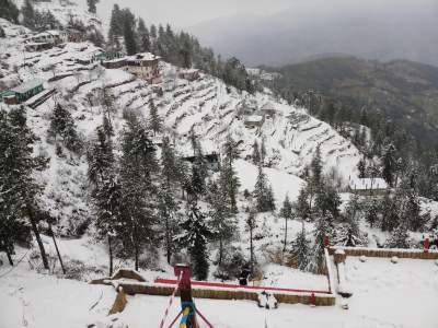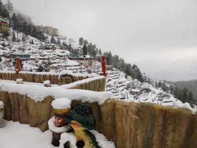 साल दो हजार बीस, सात तारीख, शनिवार का दिन हमने जाखू मन्दिर के लिये तय किया जिसमे कुफरी पर्यटन स्वतः ही जुड गया। दरअसल हुआ यू कि हमने अपने होटल मे एक कार चालक से बात की जो कि हमे जाखू मन्दिर तक ले जा सके किन्तु उसने कहा कि कुफरी मे अभी ताजा बर्फबारी हो रही है जिसका आनन्द लेने के लिये हमे वहा भी जाना चाहिये। बस फिर क्या था, हम लोग जाखू मन्दिर और कुफरी के लिये उसकी गाडी मे बैठ गये और सबसे पहले वो हमे कुफरी ले कर गया। तकरीबन एक घण्टे की यात्रा के पश्चात अरे येह क्या यहा तो जबर्दस्त बर्फ गिर रही है। यहा पहुन्चते ही आपको घोडे और खच्चर वाले घेर लेते है जिनकी तरफ हमने बिल्कुल भी ध्यान नही दिया क्युन्कि हमे घुडसवारी नही करनी थी बल्कि बर्फ मे खेलना था। इसलिये हमारा चालक हमे अड्वेन्चर पार्क ले गया जहान बर्फ मे खेलने के अलावा आप कुछ रोमान्चक खेल भी खेल सकते हो। अड्वेन्चर पार्क मे प्रति व्यक्ति टिकट पन्द्रह सौ रुपये है जिसमे आपको कपडे और जूते भी मिल जाते है। यहा पर हमारा कुल खर्च आया छः हजार रुपये किन्तु जो मजे बर्फ मे हमने किये वो सचमु्च पैसा वसूल थे।