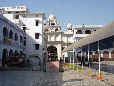 ये गुरुद्वारा एक विशाल हिस्से मे् फैला हुआ है। मुख्य गुरुद्वारे के चारों ओर दूर से आए हुए भक्तों के रहने की व्यवस्था है। गुरुद्वारे के ठीक सामने और पिछवाड़े में खुला हिस्सा है जहाँ भक्तगण बैठ सकते हैं। गुरुद्वारे के मुख्य द्वार को पार कर हम सीधे चल पड़े। नीचे चित्र में दिख रहा है प्रागण के अंदर से मुख्य द्वार की तरफ का नज़ारा…