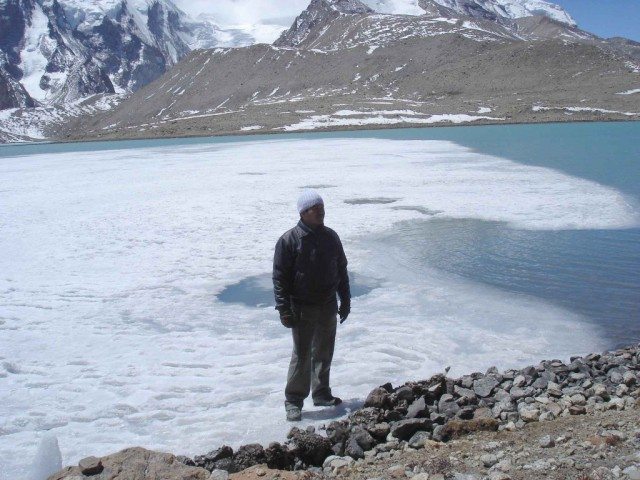 गनीमत थी कि 17300 फीट की ऊँचाई पर हवा तेज नहीं थी । झील तक पहुँच तो गये थे पर इतनी चढ़ाई बहुतों के सर में दर्द पैदा करने के लिये काफी थी। मन ही मन इस बात का उत्साह भी था कि आखिर सकुशल इस ऊँचाई पर पहुँच ही गये।