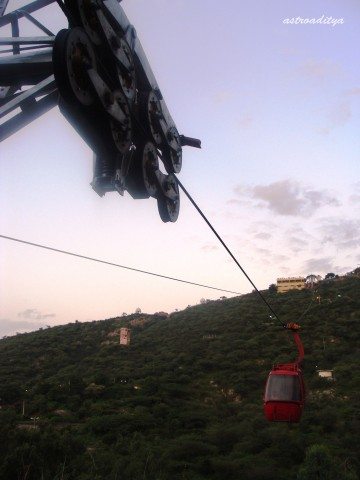 The moment i was waiting for had arrived as we came to an end of the conference on Saturday evening. My train ticket was booked┬а in Chetak Express which was scheduled to leave at 5.20 pm on Sunday. So i had entire 24 hours to roam around Udaipur, i bid adieu to my colleagues present in┬а the hotel and went to my first destination for the evening – Lake Pichola and Ropeway. Ropeway in Udaipur connects the Doodh Talai gardens to the Karni Mata temple situated atop a hill from where one can enjoy the┬а panoramic view of Udaipur City at one end and on the other the beautiful sunset at Lake Pichola. I spent a quality time atop the hill feeling the cool breeze witnessing a grand spectacle of the colors unleashing in front of my eyes.