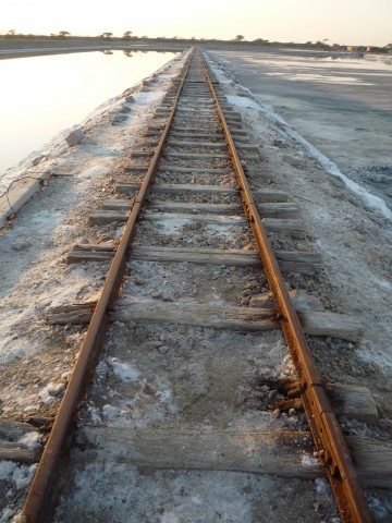 We keep moving on the road but dam was nowhere in picture. It should be around 5 km from the place we started and we have already crossed more than that. Then I check on map that we were moving far from lake and decided to return. We realized that there was no connecting road to dam and there must be an entry point. We found a dusty track which was going towards the lake. It must be used by┬аtractors┬аand other┬аvehicles. Finally we were inside the lake and it was amazing to drive bike in the lake :). We parked our bike and decided to roam around. On one side of the lake was dry beds with muddy patches in between while on the other side there was water. We saw a person coming on┬аbicycle who in fact was the only person apart from us there.┬аHe was an employee there and told us about salt formation method and other related things. He also told us that we were still far from the dam and more water was on another side of the dam. It was already 5:30 pm and we had to go back ┬аaround 100 km on almost empty roads so we have decided to keep that for future visit. We spent another 30 minutes there to witness various forms of salt, rusty rail tracks, more water and very short but beautiful sunset. There is nothing much to describe so please enjoy pictures┬аbelow. One more thing to mention is that we had crossed broad gauge (Jaipur-Jodhpur line), meter gauge (Chomu-Loharu line) and narrow gauge (Sambhar Lake) tracks on a single day in our journey.