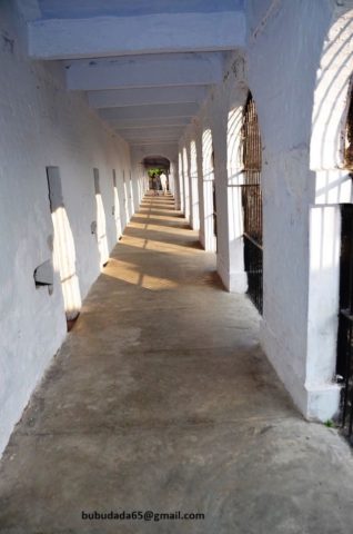 The wings originated from centre of the tower in straight lines, like the spokes of a bicycle wheel. A large bell was kept in the tower to raise an alarm, which was not there at the time of our visit. Each of the seven arms was so designed such that the face of a cell in an arm saw the back of cells in another arm.