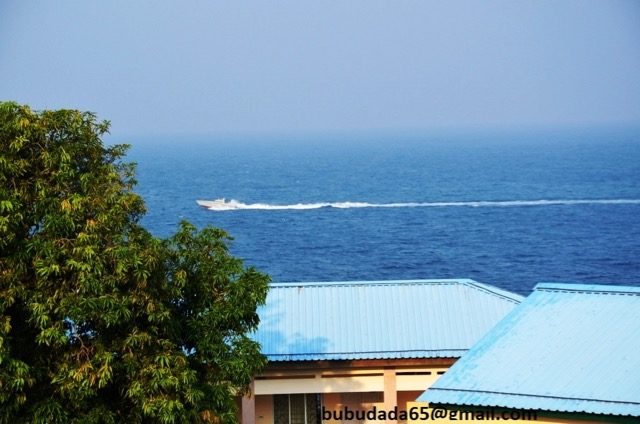 On the back side, the light blue sky had merged into the deep blue sea at a line, where the progressively diminishing colour difference became inseparable. Some toy-like ferries were crossing the sea by creating flashing white surf out of the blue water. While witnessing these marvels, all of us became speechless.