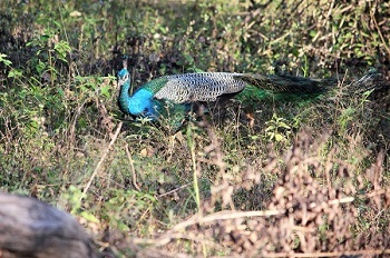 The following morning, we set off with a naturalist for a nature walk. The man who led us was carrying a stick in order to shoo away the feral animals if they came too close. Walking through the dense forest and knowing that leopards and wild dogs are close by is quite intimidating and exciting at the same time. We did spot some peacocks and deer on our way.