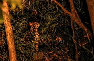 But suddenly the guide told the driver to stop and he started throwing search light in the jungle. I thought that it would be a mountain goat again so I didn’t take any much interest but the guide shouted ‘Tendua” i.e Leopard. I jumped up from my seat