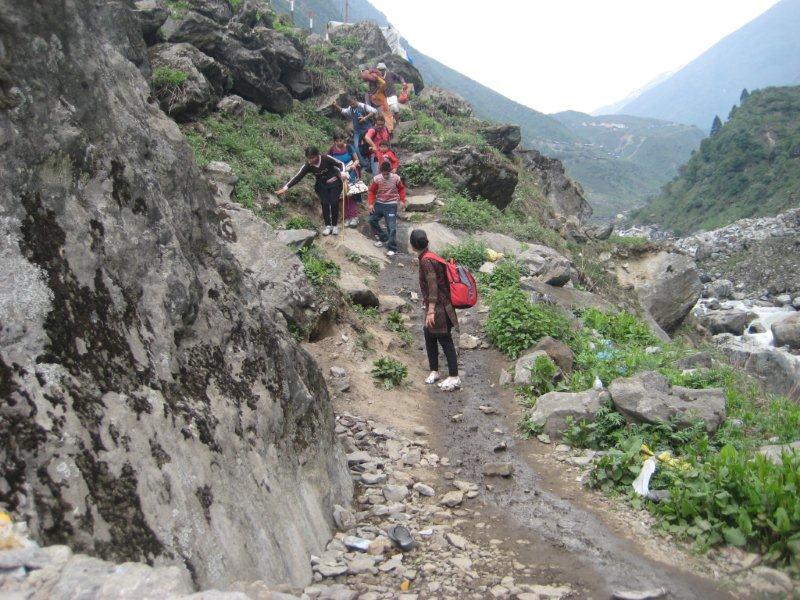 While coming back we tried shortcuts in between but it is advisable not to use if kids are with you.As sometimes short cuts are really very risky too. We experienced that downward journey is more painful than climbing up. Around 12 o’clock we reached Rambara (Midway) , we had our traditional lunch , rice & dal and relaxed ourselves for a while and again proceeded further for Gaurikund.