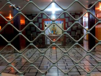 गेट के निकट ही गाड़ी दीवार से सटाकर खड़ी कर हम अपना कैमरे का बैग और पानी की बोतल लिए एंट्री को तैयार थे, लेकिन गेट पर तैनात दो लोगों ने रोकते हुए साफ़ पूछा कि “क्या आप लोग कैथोलिक हैं?”, हम प्रश्न के लिए तैयार नहीं थे, फिर भी हमने दृढ़ता से उनके प्रश्न का नकारात्मक उत्तर देते हुए अपनी सम्बद्धता स्पष्ट की. पर उसने हमें साफ़ तौर से एंट्री देने से मना कर दिया. कारण: संडे के दिन १२ बजे तक का समय प्रार्थना के लिए निर्धारित है और उसमे केवल क्रिस्चियन ही जा सकते हैं. और भी तमाम लोग एंट्री की अपेक्षा में वहां मौजूद थे.
