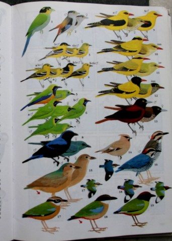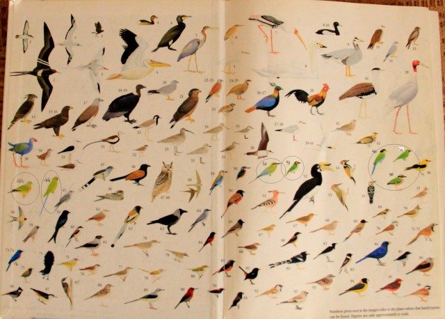 Now if we try to identify by colors alone, it is a challenging task because there are many green birds on the first page of the guide book.