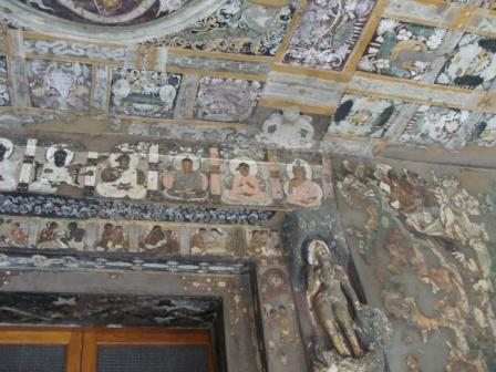 All paintings show heavy religious influence and centre around Buddha, Bodhisattvas, incidents from the life of Buddha and the Jatakas. The paintings are executed on a ground of mud-plaster in the tempera technique.