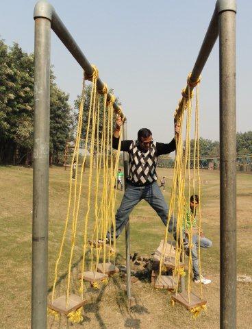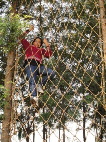 After that our friends started their adventurous activity ( Uttranchali’s specialist … :-) ). As I am teetotaler so I got the responsibility of taking kids towards the park where adventures activities can be enjoyed .All the ladies also joined us. Small children got busy enjoying Burma bridge, spider’s web , balance walk , commando net etc , the elders started playing cricket , volley ball or Table tennis.