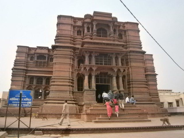 खैर, अब हम अनमने से बस स्टेंड की और बढे जहाँ हमारी वेन खड़ी थी, रास्ते में हमें श्री गोविन्द देव मंदिर दिखाई दिया, चूँकि मैं पहले से घर से ही यहाँ के सारे मंदिरों की लिस्ट इन्टरनेट से निकाल कर लेकर गया था, अतः गोविन्द देव मंदिर लिखा देखते ही पहचान गया की यह भी वृन्दावन के महत्वपूर्ण मंदिरों में से एक है। गाइड तो नाराज होकर जा ही चूका था अतः मंदिर के बाहर लगे ASI के बोर्ड से ही इस मंदिर की जानकारी पढ़ी तथा मंदिर में प्रवेश किया।