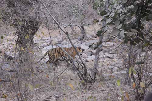 рдЗрд╕ рдмрд╛рд░ рд╣рдореЗрдВ 2 рдирдВрдмрд░ рдЧреЗрдЯ рд╕реЗ рдкреНрд░рд╡реЗрд╢ рдХрд░рдирд╛ рдерд╛ рдФрд░ рдЗрд╕ рдмрд╛рд░ рдбреНрд░рд╛рдИрд╡рд░ рд╡ рдЧрд╛рдЗрдб рднреА рд╕рдордЭрджрд╛рд░ рд▓рдЧ рд░рд╣реЗ рдереЗ рдЙрдиреНрд╣реЛрдВрдиреЗ рд╣рдореЗрдВ рдЖрд╢реНрд╡рд╛рд╕рди рджрд┐рдпрд╛ рдХреА рд╡реЛ рд╣рдореЗрдВ рдЗрд╕ рдмрд╛рд░ рдмрд╛рдШ рджрд┐рдЦрд╛ рджреЗрдЧреЗ . рд╡реЛ рд░рд╛рд╕реНрддреЗ рдореИ рдЕрдкрдиреЗ рдЕрдиреБрднрд╡ рдмрддрд╛ рд░рд╣реЗ рдереЗ рдереЛрдбрд╝реА рджреЗрд░ рдмрд╛рдж рдЧрдгрдкрддрд┐ рдХрд╛ рдордВрджрд┐рд░ рднреА рджрд┐рдЦрд╛ рдЬрд┐рд╕рдХреА рдмрд╣реБрдд рдорд╛рдиреНрдпрддрд╛ рдереА рдордВрджрд┐рд░ рдХреЗ рдмрд╛рдж рдЬрдВрдЧрд▓ рдореИ рдкреНрд░рд╡реЗрд╢ рдХрд┐рдпрд╛, рд▓рдЧрднрдЧ резреж рдорд┐рдирдЯ рдЧрд╛рдбреА рдЪрд▓рд╛рдиреЗ рдХреЗ рдмрд╛рдж рд╣реА рдбреНрд░рд╛рдИрд╡рд░ рдФрд░ рдЧрд╛рдЗрдб рдЖрдкрд╕ рдореИ рдмрд╛рдд рдХрд░рдиреЗ рд▓рдЧреЗ рдФрд░ рдЙрдиреНрд╣реЛрдВрдиреЗ рдЧрд╛рдбреА рдмрд╣реБрдд рддреЗрдЬ рджреМрдбрд╝рд╛ рджреА, рд╣рдо рдХреБрдЫ рд╕рдордЭ рдирд╣реАрдВ рдкрд╛рдП рд▓реЗрдХрд┐рди рдХреБрдЫ рдмреЛрд▓реЗ рдирд╣реАрдВ, рел рдорд┐рдирдЯ рдмрд╛рдж рд╣реА рд╡реЛ рдмреЛрд▓реЗ рдХреА рдХреИрдорд░реЗ рдирд┐рдХрд╛рд▓ рд▓реАрдЬрд┐рдпреЗ рдХреНрдпреЛрдХрд┐ рд╕рд╛рдордиреЗ рд╣реА рдПрдХ рдмрд╛рдШ рдерд╛ рдЬреЛ рдкрд╛рдиреА рдореИ рдЖрд░рд╛рдо рдХрд░ рд░рд╣рд╛ рдерд╛,