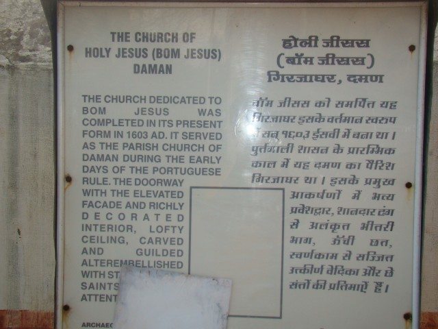 The first place that we visited was the church of “Bom Jesusâ€. This building of the church was completed in 1603 AD. It served as the parish church of Daman during the days of Portuguese rule. Here, I would like to pause and share with you my long-last fascination towards churches. When I was young, my mother used to work in an office where there were many Christians. One such Christian aunty was a very good friend of my mother. She would often take me and my brother to the church. My early schooling was done in a Christian school and I had also visited the velankani church in Santom beach, Chennai. Right from the beginning, I was intrigued by the carols sung in the church and also the melancholic faces of the Christian gods. So when I entered the Bom Jesus church, each step was like a step into nostalgia as I started to relive some of my childhood moments. The church looked splendid, painted in white and blue. The façade of the church was imposing. I took permission from the church keeper for taking photographs of the sanctum sanctorum. It was so peaceful inside the church and the architecture was awe-inspiring. My wife and I also inquired about the mass as I was looking forward to attend one however, the church keeper advised that the mass would not happen until Sunday.