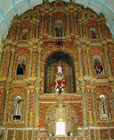 The flight of stairs leading to the top of the lighthouse was in the form of a swirl, very much like the DNA structure. The stairs were enclosed within a dingy room and was in a dilapidated state. My wife was quite brave as she climbed the stairs quickly and reached the top. I, being the chicken, slowly climbed one stair at a time and eventually made it to the top trembling with fear of falling over. From the top, the view of the sea was breathtaking. No wonder these lighthouses are such fascinating places. On the top of the lighthouse lay a contraption which I believe was the source of the light going to the ships and boats in the far sea. I chanced upon this picture of a lonely boat in the middle of the sea with a small island like structure as a background. It was an amazing sight. My wife and I came down the treacherous fleet of stairs and started for our next destination, the church of “Our Lady the Remedios†built in 1607 AD.