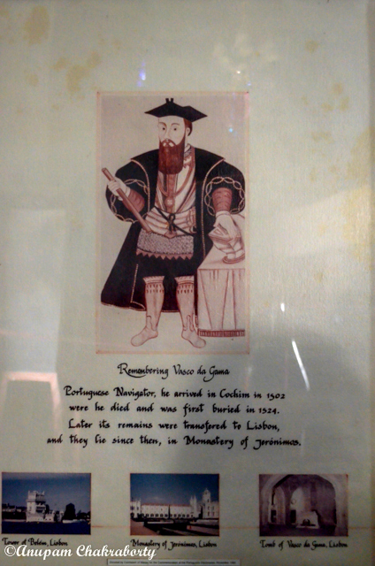 The great explorer Vasco da Gama arrived in Goa in September 1524 with his third voyage to India, but this time as a Viceroy of Portuguese India. He fell sick soon and died in 24 December 1524 in Cochin. He was buried in this St. Francis Church, and fourteen years later (1538) his body was shipped back to Lisbon, Portugul. The tomb stone of Vaso da Gama can be seen on the ground of burial spot inside the church.
