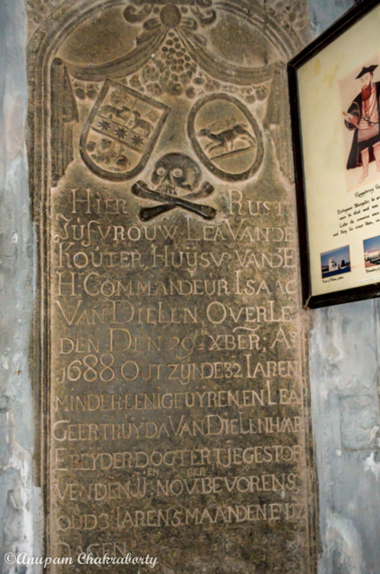 We saw gravestones were laid on the walls of church taken from the floor of graves. The Portuguese gravestones are on northern wall while the Dutch gravestones are on southern wall.
