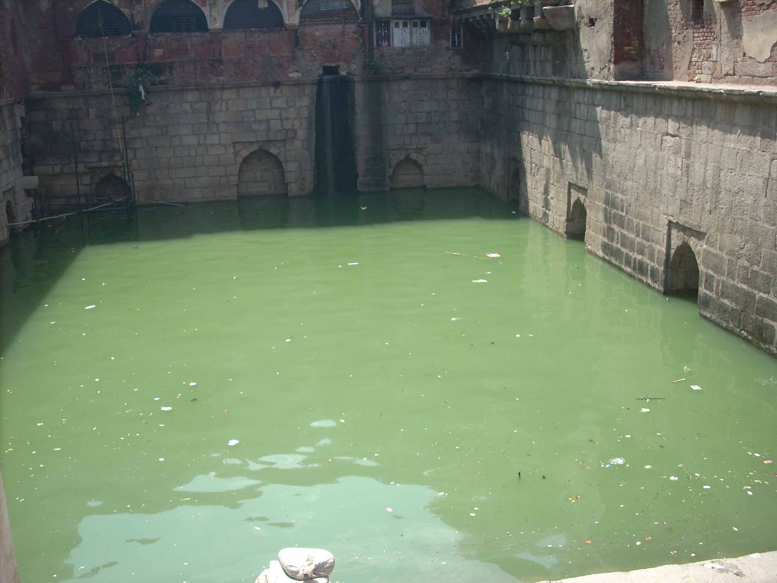 We took leave of Khwaja Nizami and headed for the northern gate of the dargah complex to have a look at the large baoli (pond), the water of which is believed to have healing powers. Shamshad told us an interesting legend associated with the dargah concerning the skirmish between the saint and the first Tughluq king, Ghiyasuddin. Hazrat Nizamuddin was getting the baoli constructed at about the same time as the king was engaged in building his fortress at Tughluqabad. The king forbade his construction workers to work elsewhere, and so they decided to work for the saint at night. This made Ghiyasuddin prohibit the sale of oil to Hazrat Nizamuddin, but the workers found that their lamps could be lit with the water of the baoli!