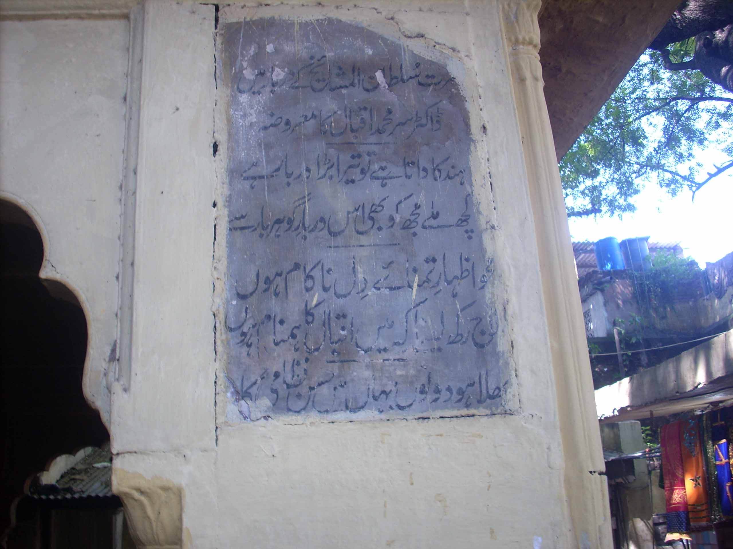A wall outside this room has a poem written in calligraphy which has been composed in praise of Hazrat Nizamuddin Aulia by the Urdu poet Allama Iqbal. Thanks to the kindness of Khwaja Nizami, who very kindly opened the heavy door to this edifice and we were able to see this room.