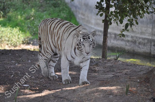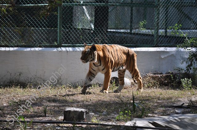 बाहर निकल कर मैं बैंक की ओर वापिस जाने के लिये सड़क के उस पार जाना चाहता था पर road divider पर कट कुछ दूर था। पैदल ही आगे बढ़ना शुरु किया तो अपनी ही साइड में zoo का बोर्ड लगा मिला। सोचा, इसे भी क्यों नाराज़ किया जाये – चलो अन्दर चलते हैं। टिकट लेकर भीतर प्रवेश किया तो लगा कि यहां तो कितने भी घंटे घूमता रह सकता हूं। शेर, चीते, भेड़िये, नील गाय, मगरमच्छ, हाथी, हिरण, बारहसिंघे, मोर की अनेक प्रजातियां, नाना प्रकार की बतखें और उनकी प्रजाति के अन्य पक्षी वहां काफी अच्छे ढंग से रखे गये हैं। खास बात यह है कि उनको घूमने फिरने के लिये पर्याप्त स्थान उपलब्ध कराया गया है – बिल्कुल पिंजरे में बन्द तोते जैसी स्थिति नहीं है। यहां का वर्णन इतना मनोरंजक नहीं हो सकता जितने यहां खींचे गये चित्र अतः ज्यादा कुछ न लिख कर कुछ चित्र लगा रहा हूं।