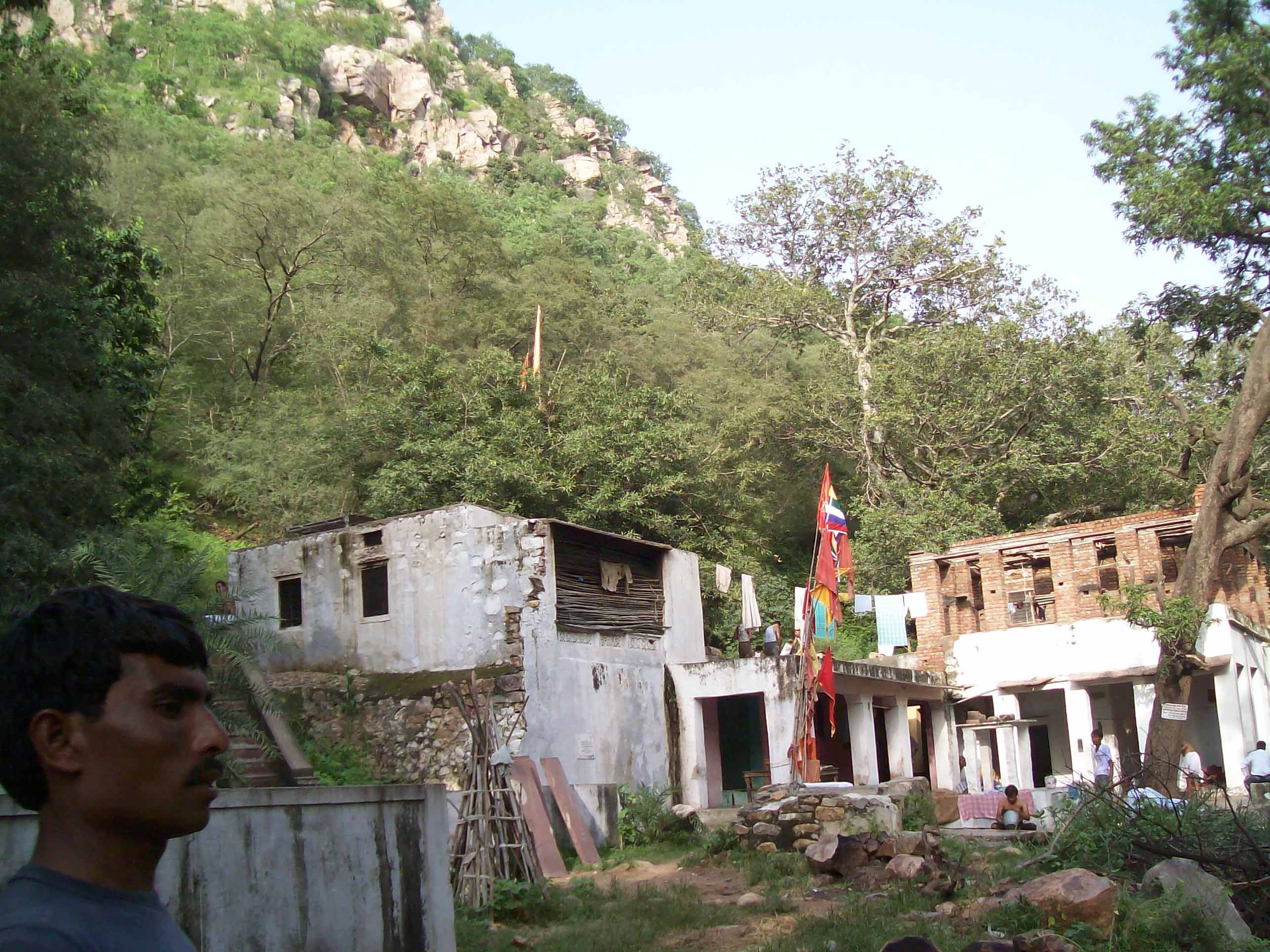 The scenic beauty on the way was awesome. Tall green trees covering the hills created an excellent landscape. On the way we saw a make shift worship place, where we were told that a Mahatma ji had been doing his Yoga Sadhna for ages, his only companions being peacocks and langoors. I wondered how on earth in this secluded place, a part of the Siriska sanctuary, where at times leopards, cheetals and wild boars have been sighted, this Baba ji could continue to pursue his solitary goal.