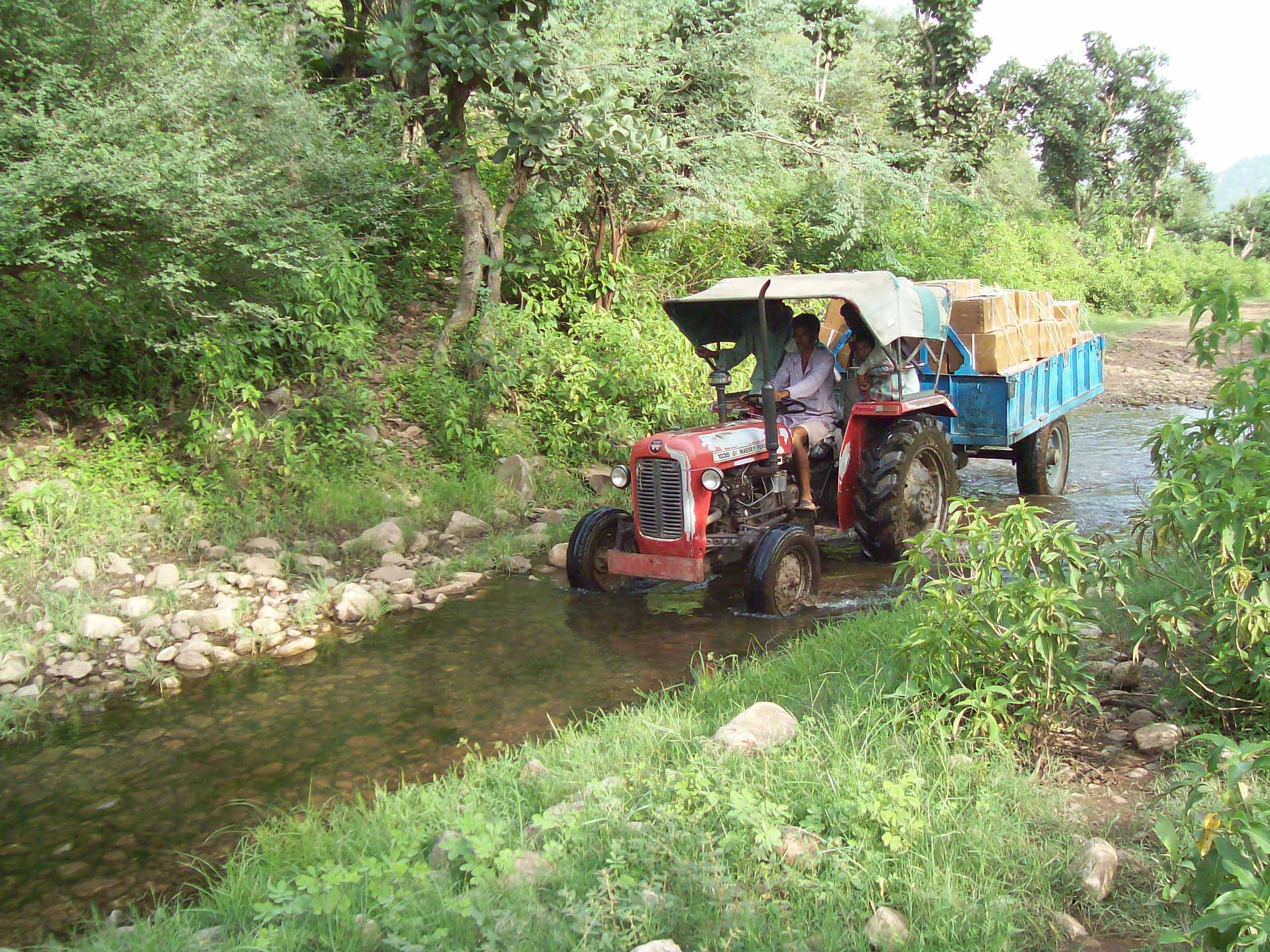 Dewari Gowada, is located in a hilly terrain. The route for the 237 kms journey is Delhi- Mannesar-Bhiwadi-Rajgarh. The roads are excellent in this stretch. From Rajgarh to Talha, the roads are tolerable, but after that a stretch of fourteen kms has no roads at all. Moving the equipment to the destination was no easy task because of the swampy and muddy tracks on which sometimes even the heavy jeeps get struck.