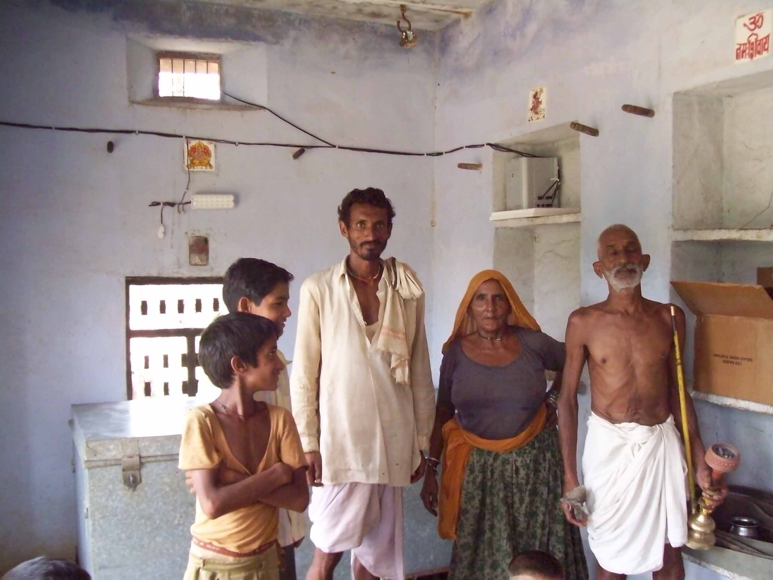 We finally reached the village Dewari Gowada- at around 12.30 p.m. The villagers, perhaps dressed -up for the occasion, had gathered at the primary school awaiting our arrival. The sarpanch (nominated head of the village) welcomed us warmly and the oldest member of the community tied coloured threads around our wrists and put a “tilak’” on our foreheads. A thanks giving ceremony followed and the statement of one of the elderly villagers moved us deeply when he said “ I had never imagined that during my life- time I would be able to see the electric light in our houses.” Another old villager said “though India got independence in 1947, for us this auspicious occasion came on the day our huts were lit.” For them it was like a dream come true.