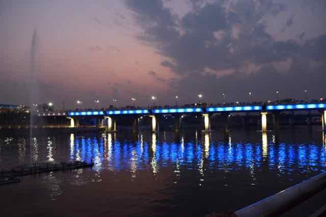 The next was “Riverside park ” at the bank of river “Gomti”. Nicely maintained park. With lots of play areas for kids. We went there after sunset and by lots of exercise managed a parking on the road as the parking provided was full. The park looked beautiful. No entry fee required which attracted huge crowd and many vendors all over. There was a musical fountain and a display of blue lighted river bridge view.
