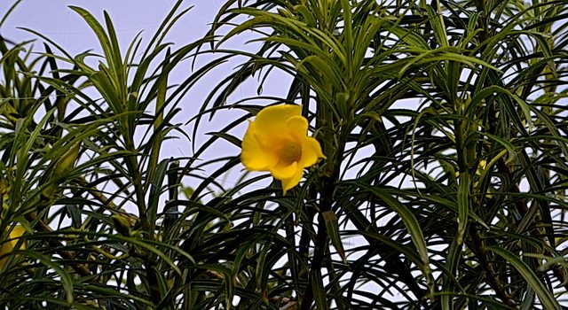 Yes, the yellow flower is Thevetia peruviana, as said by Praveen & Gita. The Bengali name of this flower is “Kalke”….it is commonly found in every village and almost every home has a Kalke tree. We used to pluck Kalke phool (flowers) and suck the honey out from the bud end. If you see the flower next time, try that and I am sure you will like it.
