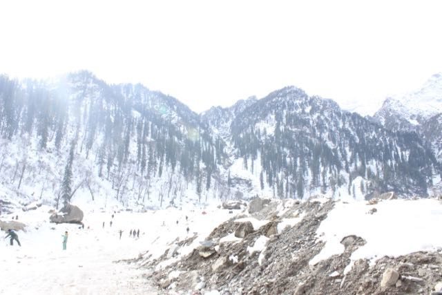 After around two hours, we managed to reach a place from where we could easily walk up to Solang. The entire valley was covered with white snow sheet, and adventure activities like zorbing and paragliding which used to be attraction of this place were altogether missing.