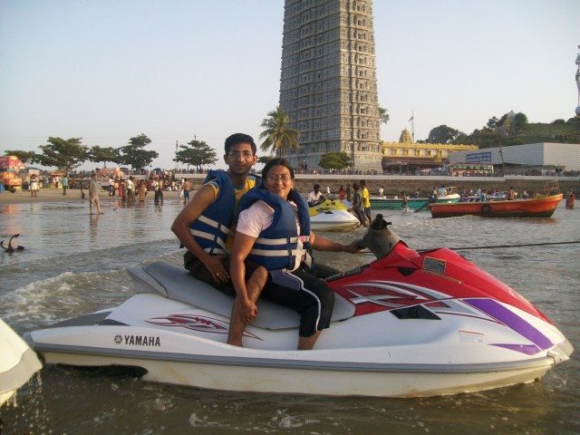 1) Take a ride on a speed-boat: Speed boat is a motor boat fitted with a powerful motor to ride the waves. The boats can accommodate 4-6 persons. Riding a motor-boat on a still water is totally different from riding a motor-boat on the sea. The “boatmen” are skilled and you can be rest assured that you are in safe hands. Adding to that , you would be strapped on to a life jacket before getting on board the boat.