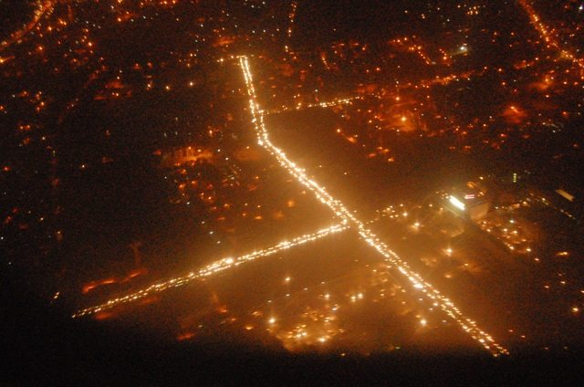 रात्रि में सभी एयरपोर्ट पर ट्रैफिक बढ़ जाता है, नई दिल्ली एयरपोर्ट पर भी लैंडिंग के लिये कोई रन वे खाली नहीं था अतः हमारा वायुयान दस मिनट तक ऊपर ही ऊपर दिल्ली एयरपोर्ट के चक्कर लगाता रहा। मैने एयर होस्टेस से कहना चाहा कि गाज़ियाबाद में हमारी सड़क बिल्कुल रन वे जैसी ही है, चाहें तो वहीं उतार लें पर फिर बाकी यात्रियों का ख़याल करके इस सुझाव को अपने दिल के अन्दर वापिस रख लिया। वायुयान की खिड़की में से हमें दिल्ली के वह दृश्य दिखाई दे रहे थे, जो हमने इससे पहले कभी नहीं देखे थे। वायुयान का पैट्रोल खत्म होने तक वह हमें वहीं घुमाता रहता तो भी हमें बुरा लगने वाला नहीं था।