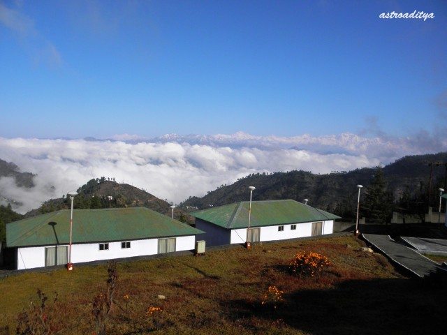 Khirsu is a small hamlet located in Pauri Garhwal District and is 5577 ft above the sea level. The place is completely isolated away from the hustle-bustle of city and is situated around the forests of Oak and Deodar trees. We started moving toward the only place that i knew, GMVN Khirsu. As we were approaching the guest house, i was treated to a view that i won’t forget in my entire life. An uninterrupted panoramic view of the snow capped peaks of the Himalayan Range with a white sheet of clouds that were hovering below. My whole body and soul was rejuvenated. I was relaxed and was happy. As if nature was enjoying, celebrating and welcoming the New Year. We went to the reception area and found that all the rooms were full. Oops! i had time to book the room online but i didn’t…..
