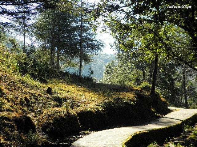 Pauri lies in the Pauri Garhwal District of Uttrakhand at an elevation of 4524 feet and is 101 km away from Kotdwar. The first sight was disappointing, it was all cloudy with no signs of improving and it was cold. My only jacket was not proving to be enough and i was shivering. We went to a shop nearby and had some tea and samosa. The shopkeeper told us that it snowed yesterday in Khirsu but after that it rained so their will be very little or no snow left. Only the word snow caught our attention and we were eager to cover the last 18 km asap. The taxi driver was sitting in the same shop, sipping a hot cup of tea and told us that he’ll leave to Khirsu around 9.00 a.m. Fair enough we waited for him to finish repairing the taxi and calling more passengers. Soon we were on the track and sunlight was making its way through dense fog. 45 mins later we reached Khirsu and it was all bright and sunny but their were no traces of snow.