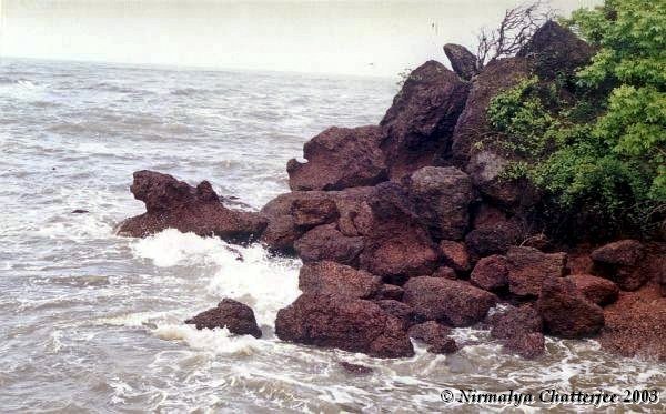 The Dona Paula is in essence a rocky promontory jutting into the sea, and from its high perch one can see a panorama of the surrounding country and seaside! I caught glimpses of the Hilly part of Panjim Town, the breakers bashing the rocky cliffs, the rivers Zuari and Mandovi meeting the sea on either side, and the white golf-ball dome of the NIO (National Institute of Oceanography) The place is basically surrounded on almost all sides by the sea and is definitely worth a visit. Thereafter, I went back to Margao (my train was at 2:10 pm) by bus, via Panjim. And was jolted back to the reality that is India with the news that on account of heavy rains in Bombay for the past two days, trains were running at the maximum speed of 40 kilometres per hour, and my train would leave at 7:30 pm, so I had precious little to do, save nibbling on chikkis, and biscuits!