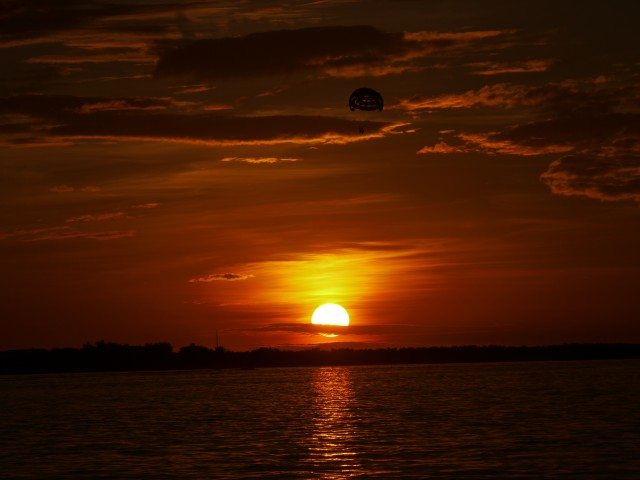 2. Sunset by the Key Largo, Florida. This is by the Gulf of Mexico. The Keys are a bunch of islands off mainland Florida, and it is one of the more scenic drives I have taken. As usual, I went a little crazy in this trip, taking pictures of multiple sunrises and sunsets during my stay in the cold end of November mornings and evenings. The next two pictures of the sunset will testify that. I especially love the picture with the parachute above the sun. The sunset must have looked all the more wonderful to the people up in the parachute. (Key Largo, Florida, Winter of 2010).