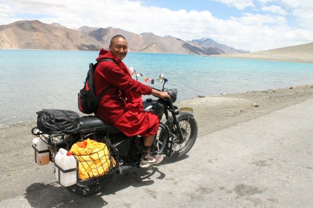 We rode a little further and reached the famed Pangong Lake. It was as if heaven had descended upon earth. It was a like a place that one would have only heard of in fairy tales and cartoons. A vast sheet of azure laid to perfection with a panorama of dry, motionless mountains. This one moment made all of us feel lucky and blessed. We spent awful amount of time taking photos in different poses and couple of us also dared get into the icy cold water. After staying there for some time, some of us decided to return to Leh. Since this was penultimate day in Leh therefore, I was insisting that we should return to Leh the same day and use the next day to get our bikes checked before we take on the odyssey of crossing the Manali-Leh highway. But Anil, Sukrit, Himanshu and Harsh wanted to experience the night in Pangong Tso so they stayed back. The rest of us resumed our journey back to Leh.