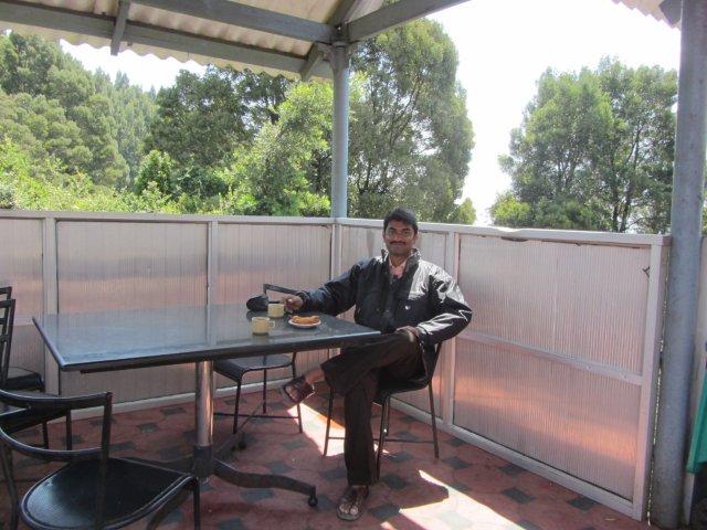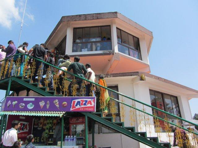 Doddabetta Peak is the highest point in the Nilgiris mountain range at 8650 feet. It is one of the most popular tourist spots in Ooty . Vehicles can reach right upto the top of the peak and there is ample parking space, unless you visit in April or May. Thankfully our bike didn’t need too much parking space. At 10.30 am, the place was already teeming with all kinds of vehicles and people jostling for space. After a long drive, we both settled into the small cafe at the peak, to refresh ourselves with coffee and snacks. I heard from the locals at the place, that only the previous day the place was lashed with thunder showers and hailstorms for a full two hours in the afternoon.(On reaching home, I found the photos of the hailstorm all over the front pages). After the usual photo session, we headed straight towards Ooty town