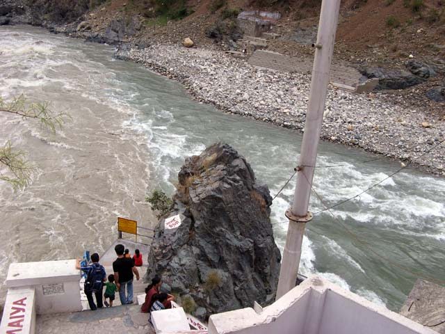 Next came Nandaprayag after another 22 kms through the same route. Here it was the turn of the green Nandakini River to turn muddy by merging with the opaque waters of the Alakananda. Sure enough, this prayag bears resemblance with the others. Only that the rivers seemed to show even more gusto and power. Some more photos were clicked. By this time, we had caught on the madness of following the pious Alakananda all the way up the mighty Himalayas till her origin.