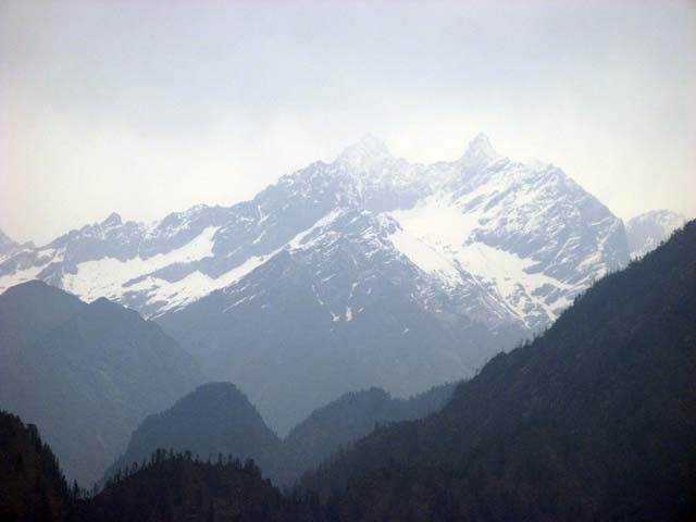 Don’t be misled by the places named in the title. Though we are religious at heart, yet this trip could not be called a pilgrimage. It was the beauty and the snow that beckoned us. This time mainly it was the scorching heat of the plains that drove us to the hills for a brief respite. Two families packed off in our Honda City and hit a hurried semi-planned trip to the prayags hoping to drive till Badrinath in our 5-day long trip. We started off from Noida at 11.30 on a Friday night and after crossing Hardwar at around 3.30 and Hrishikesh at around 4.30 early in the morning, we finally reached Devprayag at about 8.30. It was a tiring overnight journey with each of us falling asleep in bits and pieces. Finally, at the dawn of day when we opened our sleepy eyes, even in the semiconscious state of our slumberous minds, we could not overlook the intense beauty of the transforming hills as the sky got brighter and brighter with the sun’s hue. The massive darkened silhouette of the wondrous Himalayas of the night time turned into giant mounds of sunny blue mounds with crimson tops at the day break. The sunny expanse hit our heavy eyelids and shook us out of reverie.